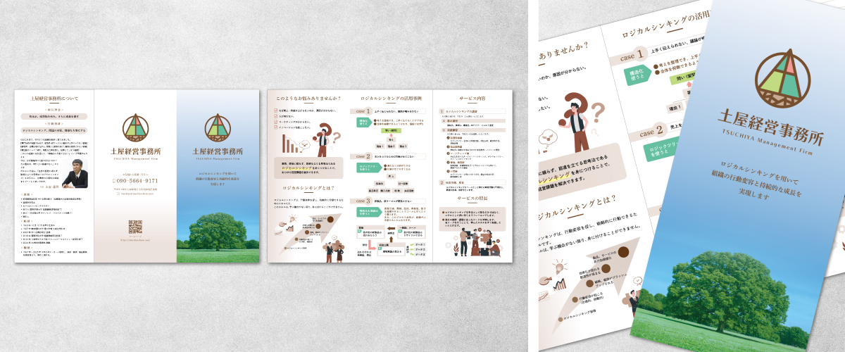 土屋経営事務所様は、リーフレット制作だけでなく、ホームページ制作・名刺制作もお任せいただけました。